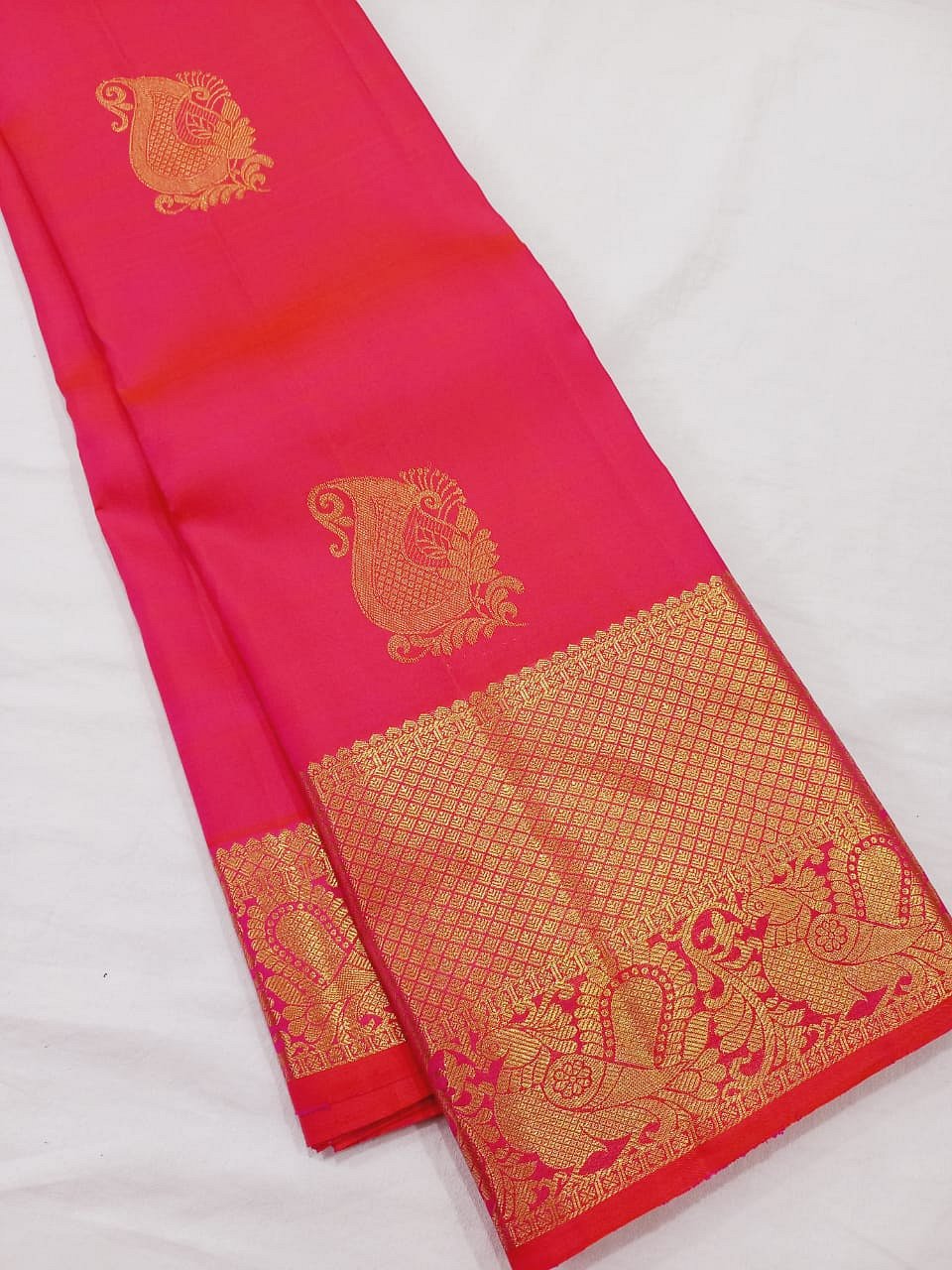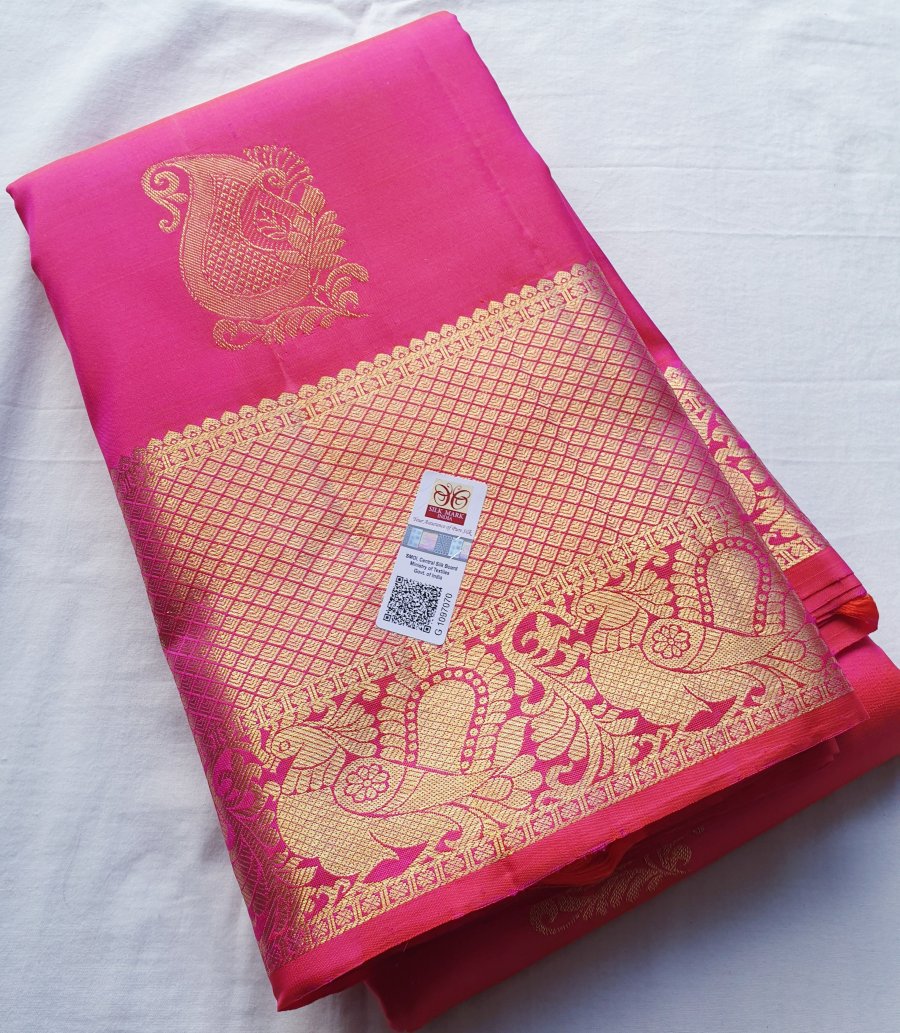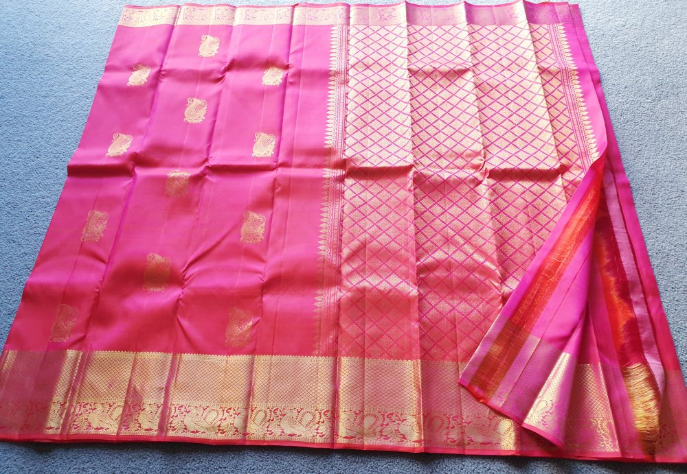 PURE Kanchipuram silk saree in pink and gold.