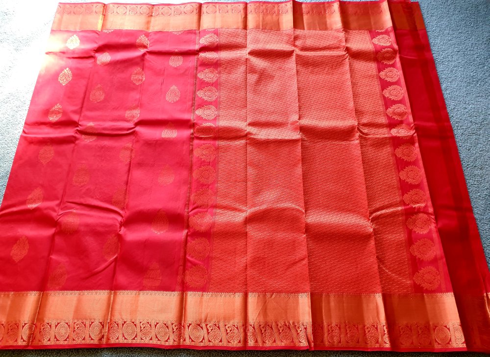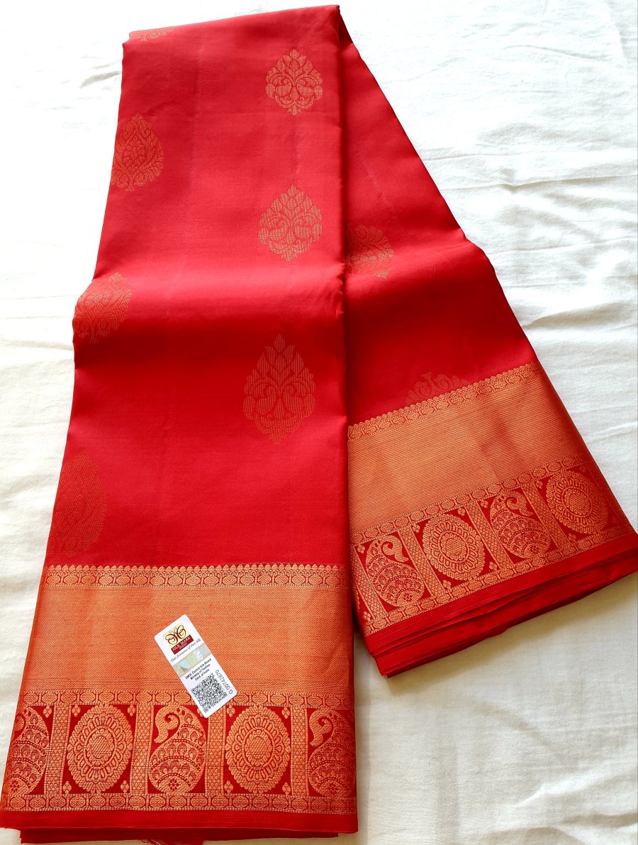 PURE Kanchipuram silk saree in Deep Red & Copper.