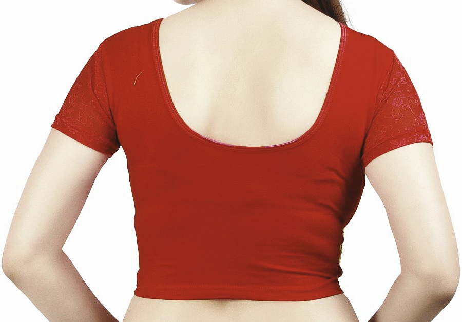 Ready made stretchable saree blouse with short sleeves.